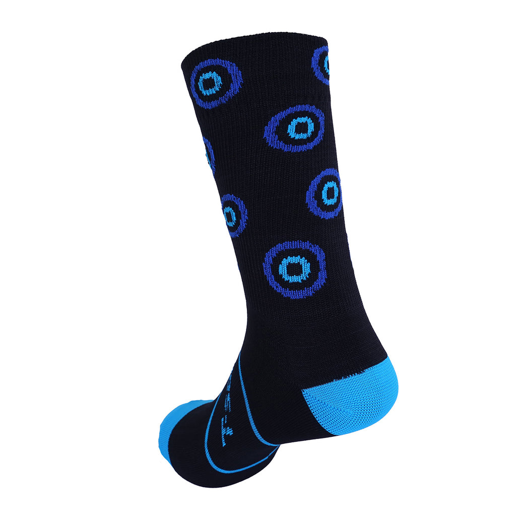 Inspirada na força simbólica do Olho Grego, presente na imagem como um olhar que protege e direciona, esta meia de performance representa foco, energia e proteção em movimento. O design central remete à vigilância constante, simbolizando concentração e confiança a cada passo, treino ou desafio.